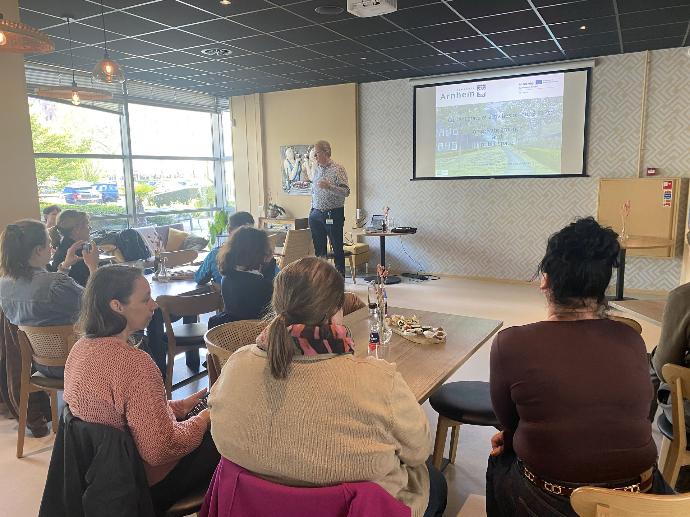 In the business park, park manager Milan Zeewald joined the partnership to explain how she is meeting with the tenants of the business park. If they want to implement climate adaptation measures, they can work with a consultancy to plan suitable green-blue infrastructure for their premises (the municipality of Arnhem is offering to cover 75% of these design costs). Further, if the companies chose to go for implementation there is a green-blue subsidy available for ca 30-40% of the costs.
